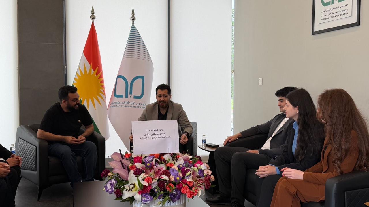 وەفدێکی ناوەندی کاروباری یاسایی (ی.ن.ک) دوانيوەڕۆی ئەمرۆ ٢٧-٤-٢٠٢٦ سەردانی کۆمەڵەی خوێندکارانی کوردستانیان کرد ، بەبۆنەی یوبیلی زێڕینی دامەزرانديان و چەپكه گوڵی پيرۆزبایی خاتوو تەلار لەتيف ئەندامى مەكتەبى سياسى و بەرپرسى ناوەندى کاروباری ياساييان پيشكەشكردن، کۆمەڵەی خوێندکاران زەرورەتێکی مێژووی بووەوە ، ڕۆڵێکی گرنگ و کاریگەریان هەبووە لە ئیستاو لە ڕابردوو لە نوێنەرایەتی خوێندکاران و گەیاندی پەیامەکەیان ،